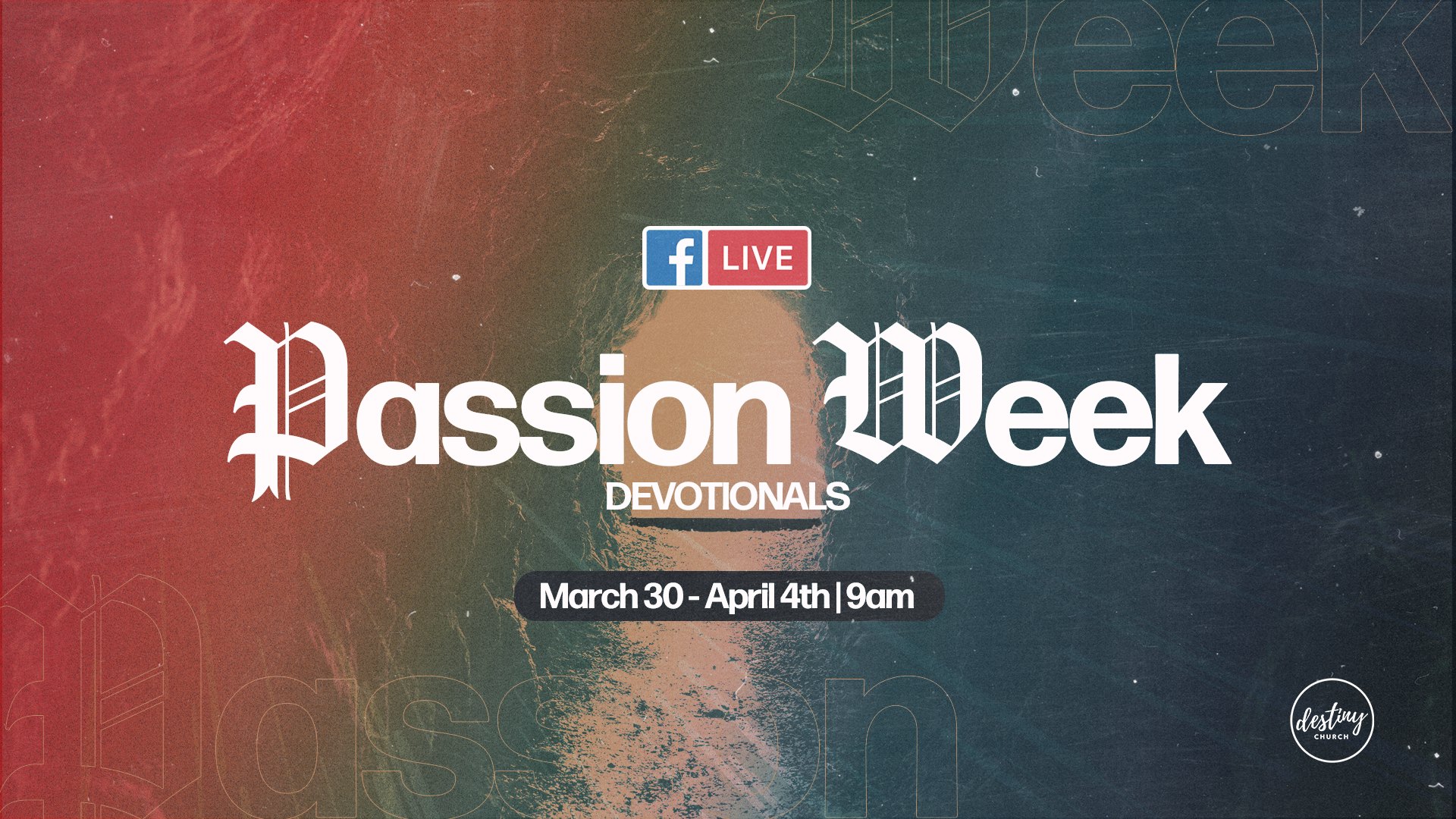 Join the staff Pastors on Facebook Live for a short morning devotional March 30th - April 4th at 8am.
